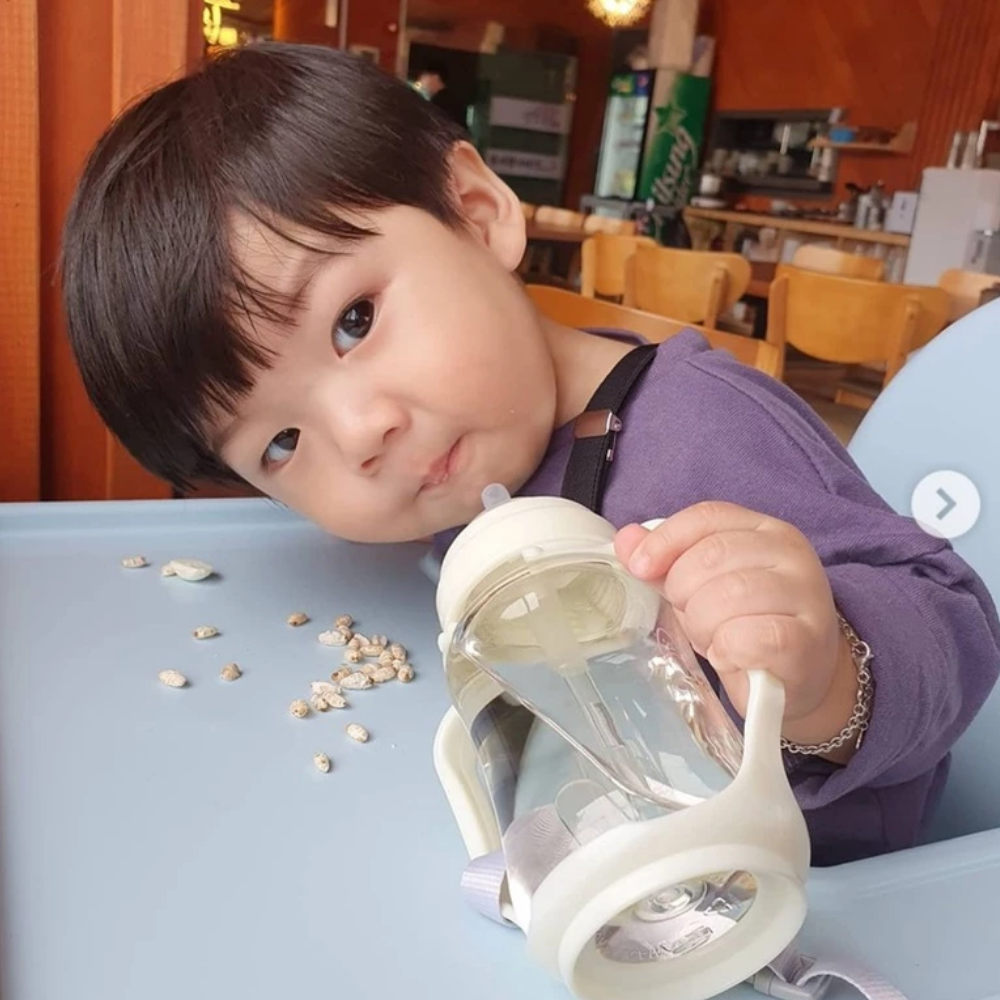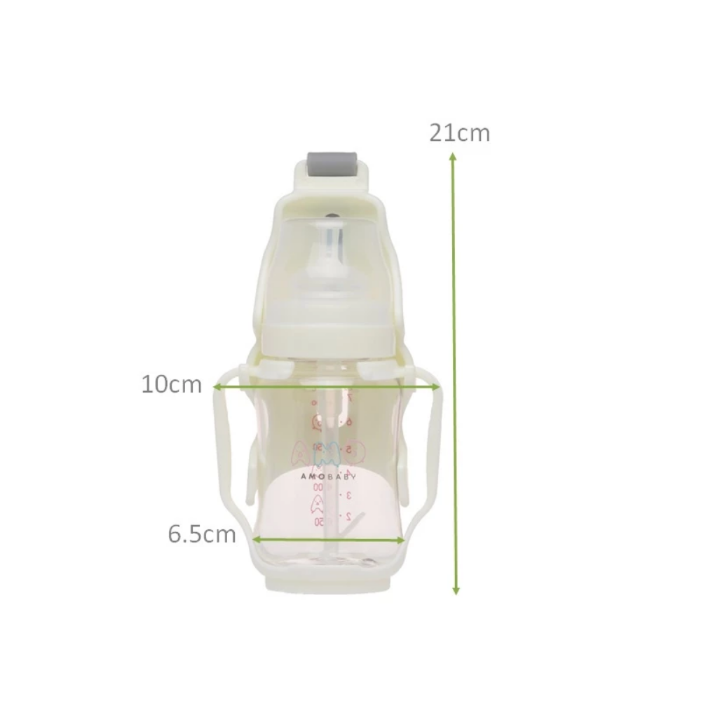 The anti-bend straw is designed to ensure a smooth, uninterrupted flow without folding or collapsing during use. It features a built—in stirrer for easy mixing of powders on the go, offering added flexibility for feeding. The bottle is easy to disassemble for thorough cleaning and comes with a silicone strap that attaches conveniently to strollers—perfect for hygienic, travel—friendly use.