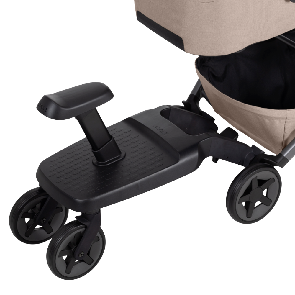 Ready for a family adventure? The Joolz Aer 2 footboard has you covered! It is the perfect accessory for parents who head out with two little ones. Add it in one click to your Joolz Aer+ and your toddler is ready to ride, whether standing or sitting. Has your little rascal regained energy and wants to walk again, just flip up the footboard and ride on. Is it time to call it a day? No need to detach. Just fold the footboard with your Joolz Aer+ into a compact package and store it away. Easy does it!