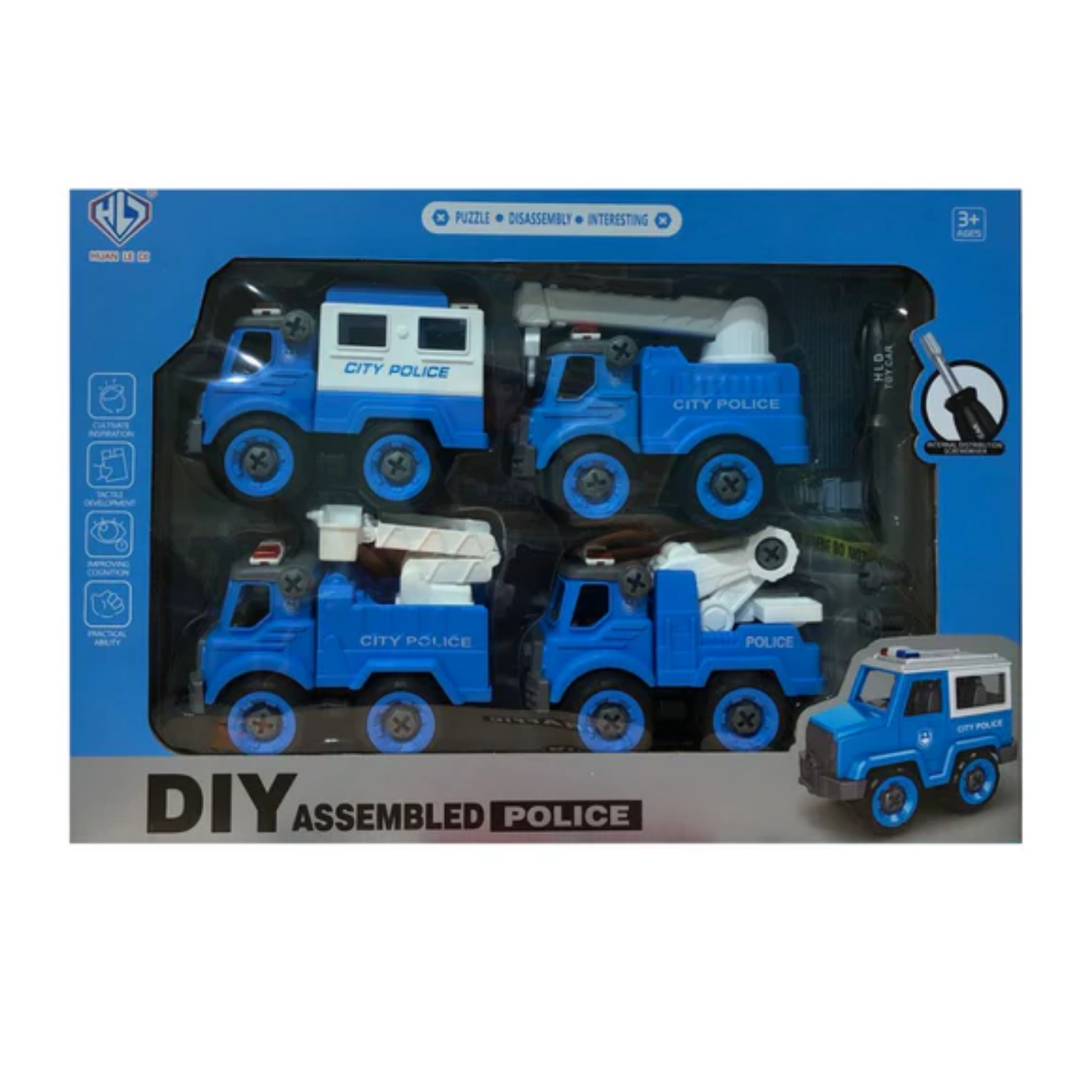 This set includes 4 vehicles that ensembles real life police cars. It can be played as cars, pretend play in a setting that depicts the role of policemen in our society, and the most interesting part is that your child can use the screw included to disassemble the cars! They can practice fine motor skills and exercise their finger muscles with this activity.