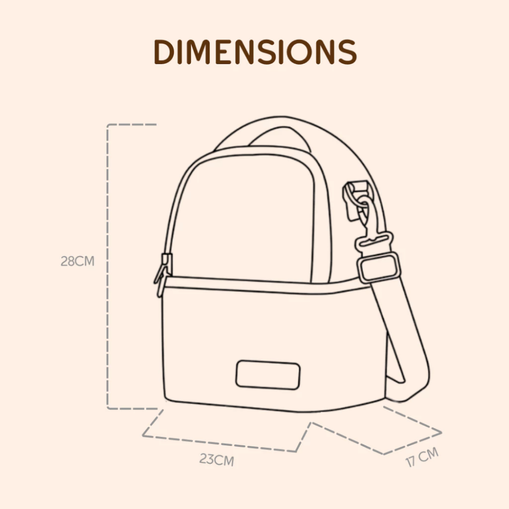 Compartments: Dual storage top for dry items, bottom insulated for milk or food.
