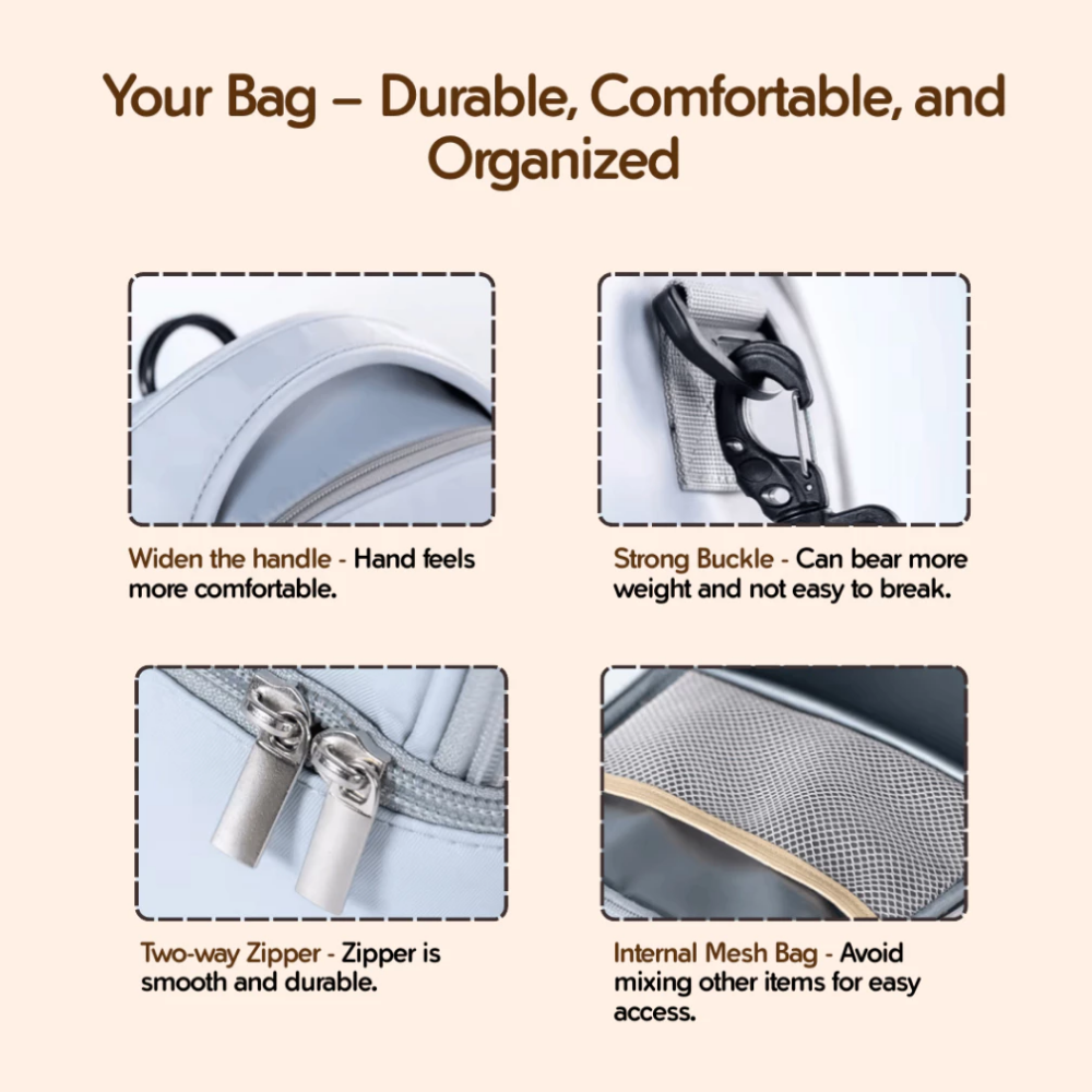 Spacious & Organized – Multiple compartments to fit baby bottles, diapers, wipes, and mom’s essentials.
