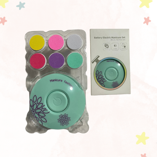 Includes 6 filing pad cartridges for 0-3 months, 6-9 months, 9-12 months, adult fine and coarse nails, and polisher