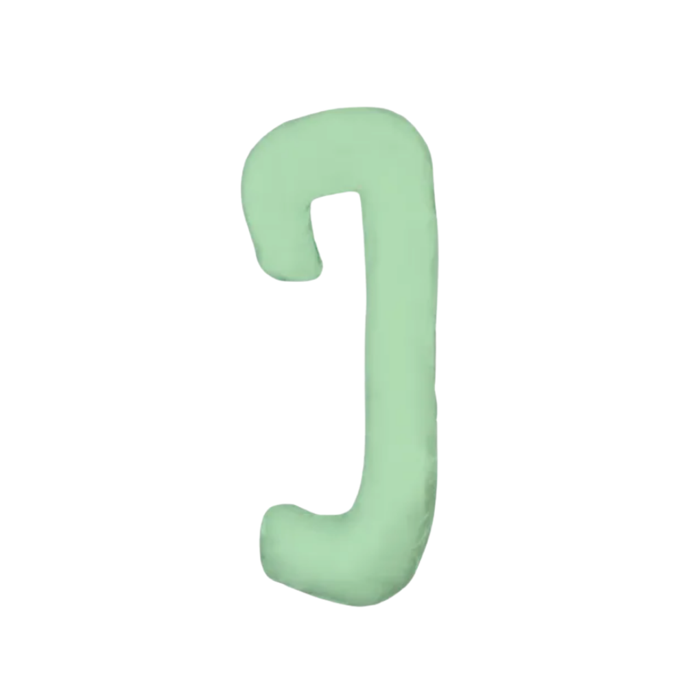 Soft, C-shaped pillow for full-body comfort and support. Ideal for pregnancy, nursing, side sleeping, or relaxing.