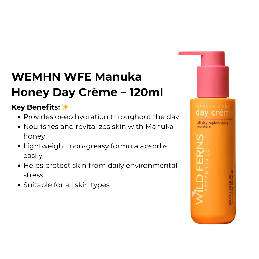Start your day with the nourishing care of Wild Ferns Essentials Manuka Honey Day Crème. Enriched with the natural goodness of pure New Zealand Manuka Honey, this luxurious daily moisturiser is blended with Shea Butter and Macadamia Oil to deeply hydrate and soften the skin.